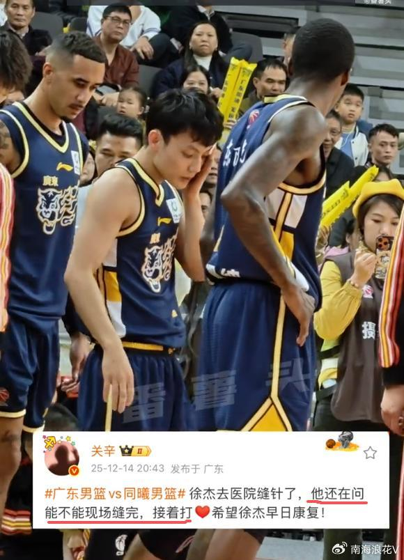 角逐还在进行中,可是广东队跟队记者关辛流露,“徐杰去病院缝针了”。受伤后徐杰一句话足以让所有人动容,此时他没把伤放在心上,而是想着球队,问队医:“能不克不及现场缝完,接着打”,此言真是催人泪下,这孩子心中没有本身,只装着球队。